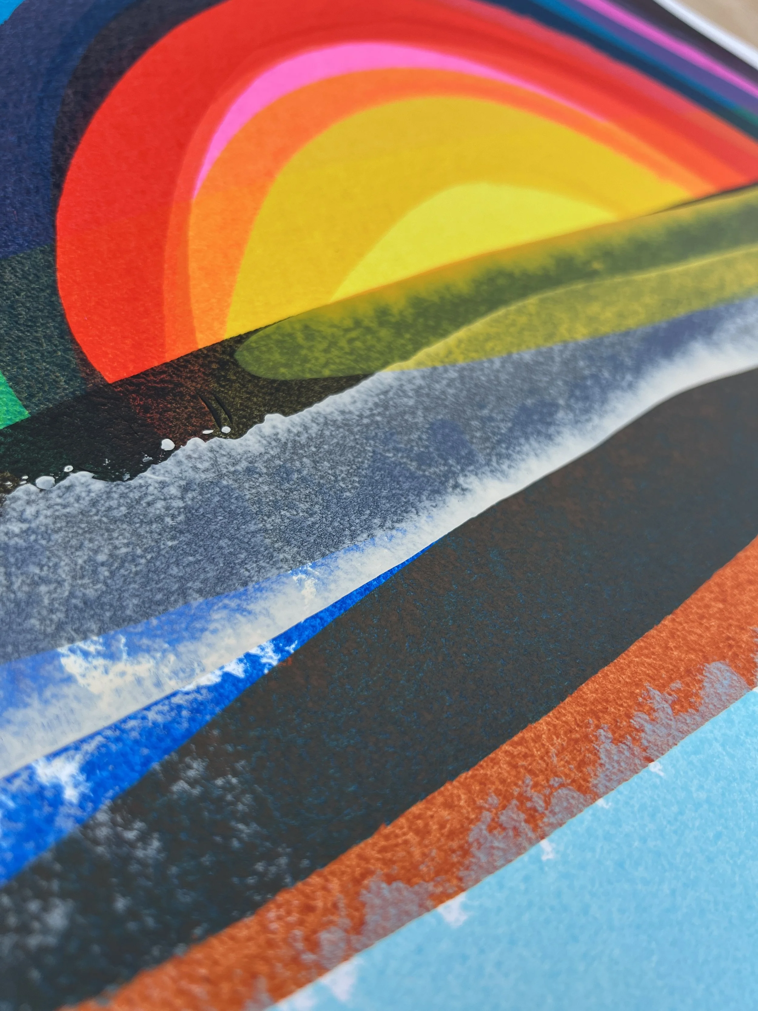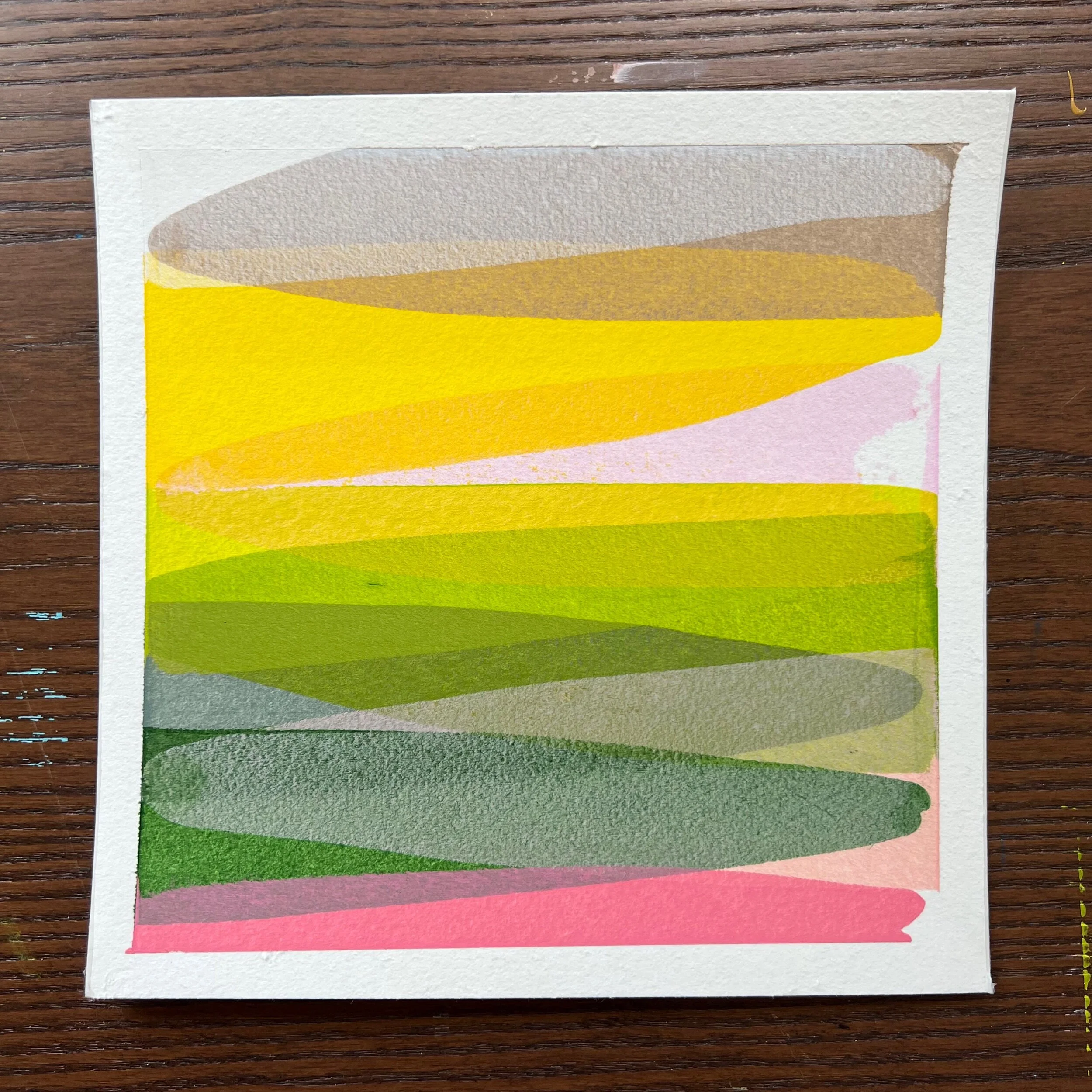 All of the swipe paintings are made using a silicon spreading tool with acrylic paint on heavyweight watercolor paper.